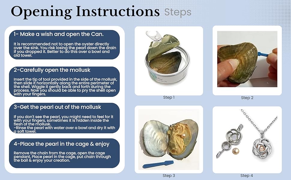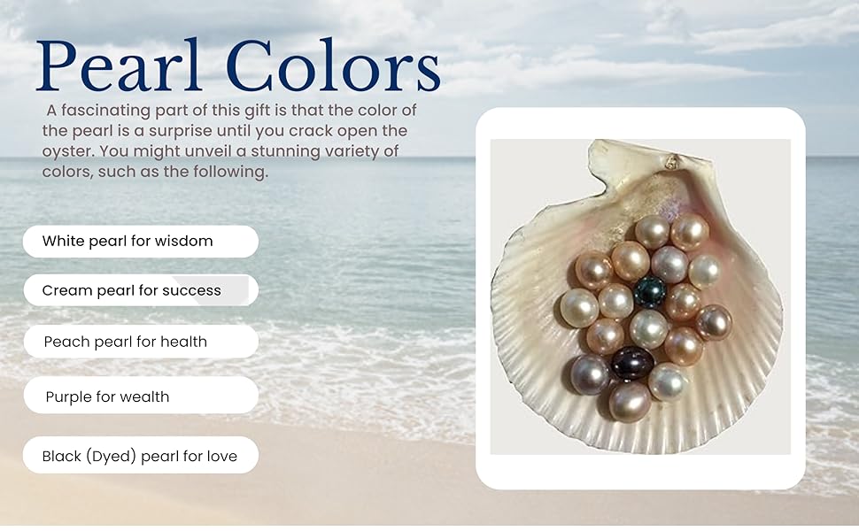 • Fun Family Activity: Harvest your own genuine freshwater cultured pearl (5–7mm). Pearl colors may vary including white, cream, pink, purple, peach, or black (black pearls are dyed).